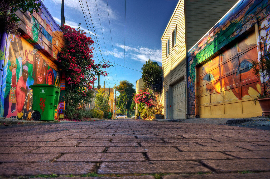 Balmy Alley is a one-block-long alley that is home to the most concentrated collection of murals in the city of San Francisco. It is located in the south central portion of the Mission District between 24th Street and Garfield Park. Since 1973, every building on the street has been decorated with a mural. Balmy Alley represents the spirit of the Mission District: Resistant and Cultural.